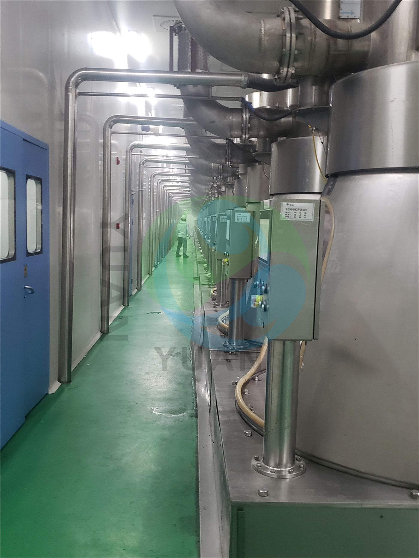 Die kommerzielle Stärke wird in den Auflösungstank geschickt und durch Zugabe von Wasser aufgelöst. Geben Sie dann durch die Online -Erkennung und Kontrolle den Aufschlämmungsmischtank ein, passen Sie den DS, den pH -Wert und die Enzymmenge der Stärkemilch ein und treten dann in das automatische Verflüssigungssystem ein. Übernehmen Sie das zweimalige Auswurf, zweimal blinkend und behalten Sie die entsprechende Temperatur bei. und eine bestimmte Zeit, um den besten Verflüssigungseffekt zu gewährleisten. Nach der Verflüssigung wird durch pH -Einstellung und Enzymabzug der Sirup an das Saccharification -System gesendet. Durch die Kontrolle der Menge an Enzym- und Saccharifikationszeit wird der DE- oder DX -Wert erreicht, der vom Endprodukt benötigt wird, und der Sirup tritt in die Filtrationsstufe ein, um das weniger im Produkt gemischte weniger Protein und andere Verunreinigungen zu entfernen. Nach der Filtration durchläuft der flüssige Sirup die Enthüllung, Filterung und ein kontinuierliches Ionenaustauschsystem, um die farbigen Verunreinigungen und Unreinheiten des Sirups zu entfernen, damit der Sirup den Zweck der Verfeinerung und Reinigung erreichen kann. Nach der Konzentration durch Verdampfer erreicht die Glukose die für die Kristallisation erforderliche Konzentration und tritt in das Kristallisationssystem ein. Nach der Kühlkurve des Kristallisationssystems wird die Temperatur der Glukose im Kristallisator automatisch eingestellt. Nachdem der Kristall für eine bestimmte Zeit aufrechterhalten wurde, tritt der Kristall zur Trennung in die Zentrifuge ein. Nach der Trennung wird der Mutterlauge durch Rückkehr zum vorherigen Prozess weiter verwendet. Die getrennte Glukose wird im Luftstromtrockner getrocknet, um den qualifizierten DMH zu erhalten.